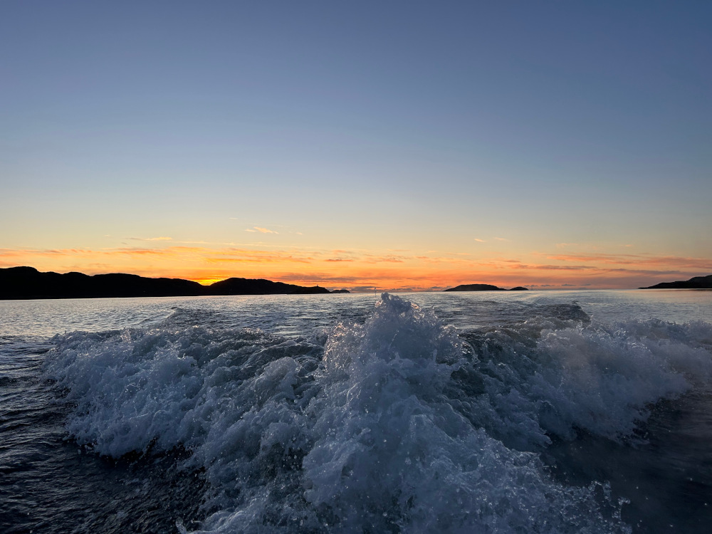 Being out on the northern seas at sunset is a magical experience. The sun sets slowly this far north and during the summer the sky never truly darkens. So there’s plenty time to relax – with a wee glass of wine or beer, if you fancy – and drink in the long summer evening.
